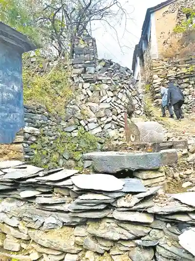 继续向前走,经过一段土坡路,两旁是传统院落,有的屋子已经无人居住,不免有些破旧之感。王兰顺解释道:“为了保持水峪村原汁原味的古村落风景,许多传统民居仍然维持着原始状态,使我们可以近距离地观看和感受传统村落的历史。”据介绍,水峪村现存600余间石木结构古宅院落,房屋采用木质架构,石板覆顶,雕染画栋,门楼多置石鼓砖雕,门头饰有彩绘岩画。宅院既沿袭山西古民居特点,又吸纳宫廷建筑元素,是华北地区典型的明清风格古建筑群。尤其屋顶取自山上的页岩,由一片片薄薄的岩石错落有致地排列、搭建而成,让人不得不为村民的智慧所感叹。