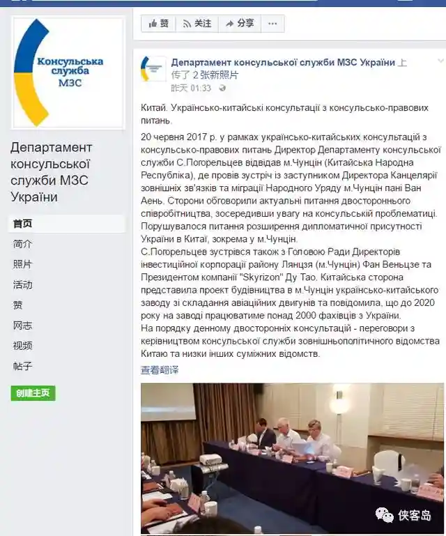 在乌克兰驻华使馆的脸书上,透露了这次会见的目的:中乌外交部门正在协商移民签证问题,讨论简化签证程序问题。