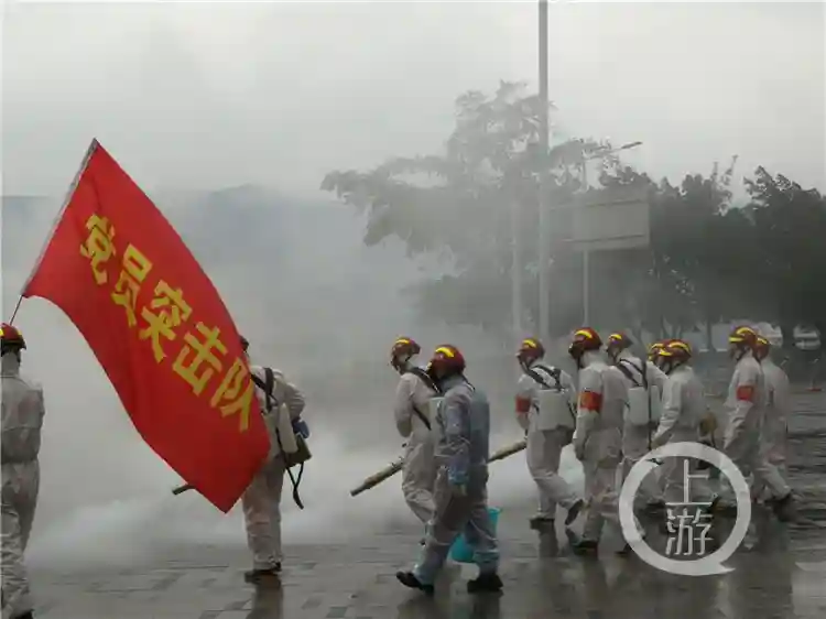 “我们今天的任务是对周家坝各个小区进行消杀。”在万州区应急管理局大门口,易中明带领队员们出发了。