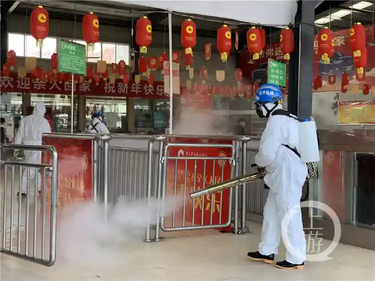 1月26日,万州区应急消杀突击队正式成立。80名队员在万州区疾控中心指导下,对万州高铁站、汽车站、火车站、飞机场、万达商场等人员密集场所以及辖区11个街道重点小区、重点行政办公楼走廊、消防通道、电梯井、公共设施进行全覆盖式消毒。