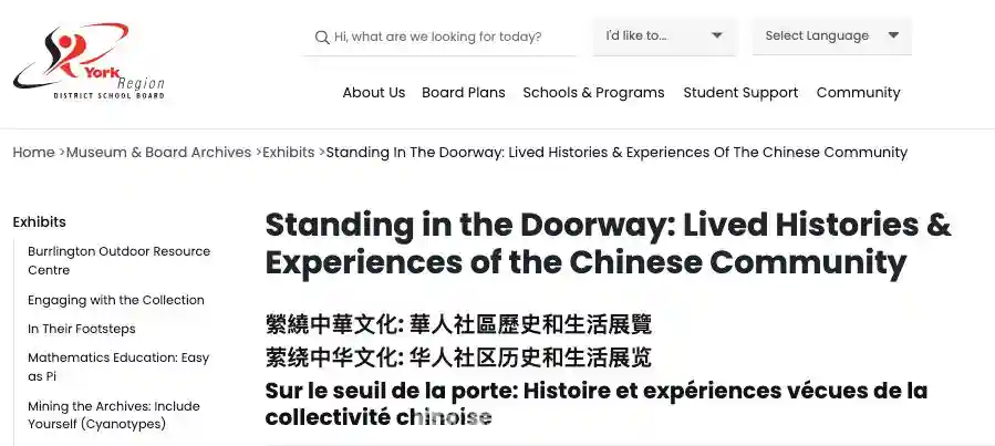除了在万锦博物馆亲自体验展览外,还可以通过约克区教育局YRDSB网站获得在线版本。