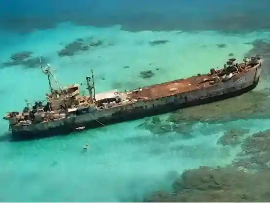 甚至在一年之后,菲律宾政府居然拖来了艘废弃的军舰,直接搁浅在黄岩岛,当作菲方人员的驻所。