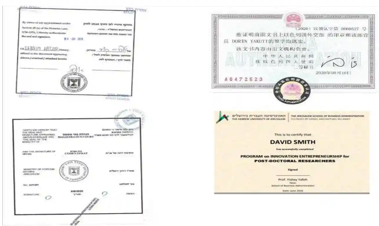 在希伯来大学完成课程后先取得博士后证书,用博士后证书原件申请做中国大使馆认证。