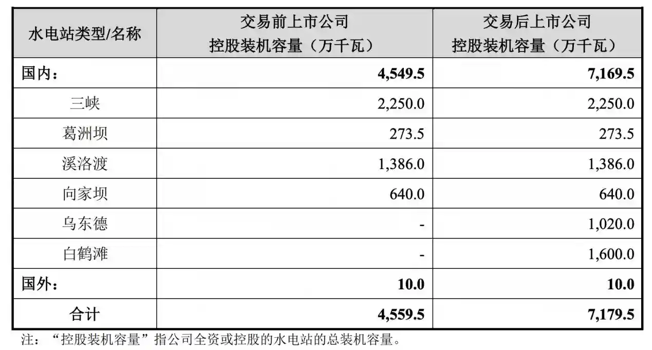 此次交易最直接的效应是装机容量的增加。在交易完成后,长江电力控股总装机容量将增至7179.5万千瓦,大增57.46%。不过装机容量增加不等于发电量增加,不同电站发电利用小时数差异直接影响到发电量。