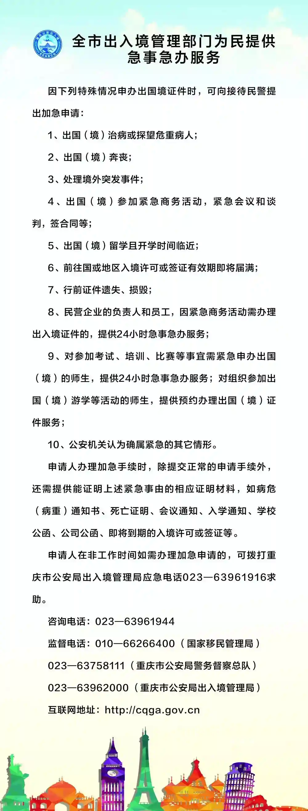 按照国家移民管理局统一部署,自5月1日起,重庆市公安局全面实行申办护照等出入境证件“只跑一次”制度,即确保申请人到出入境办证厅一次即可完成申办护照等出入境证件的全部手续,取得了较好社会反响后。据了解,“只跑一次”新制度实施以来,铜梁区出入境大厅受理各类出入境业务1546人次。
